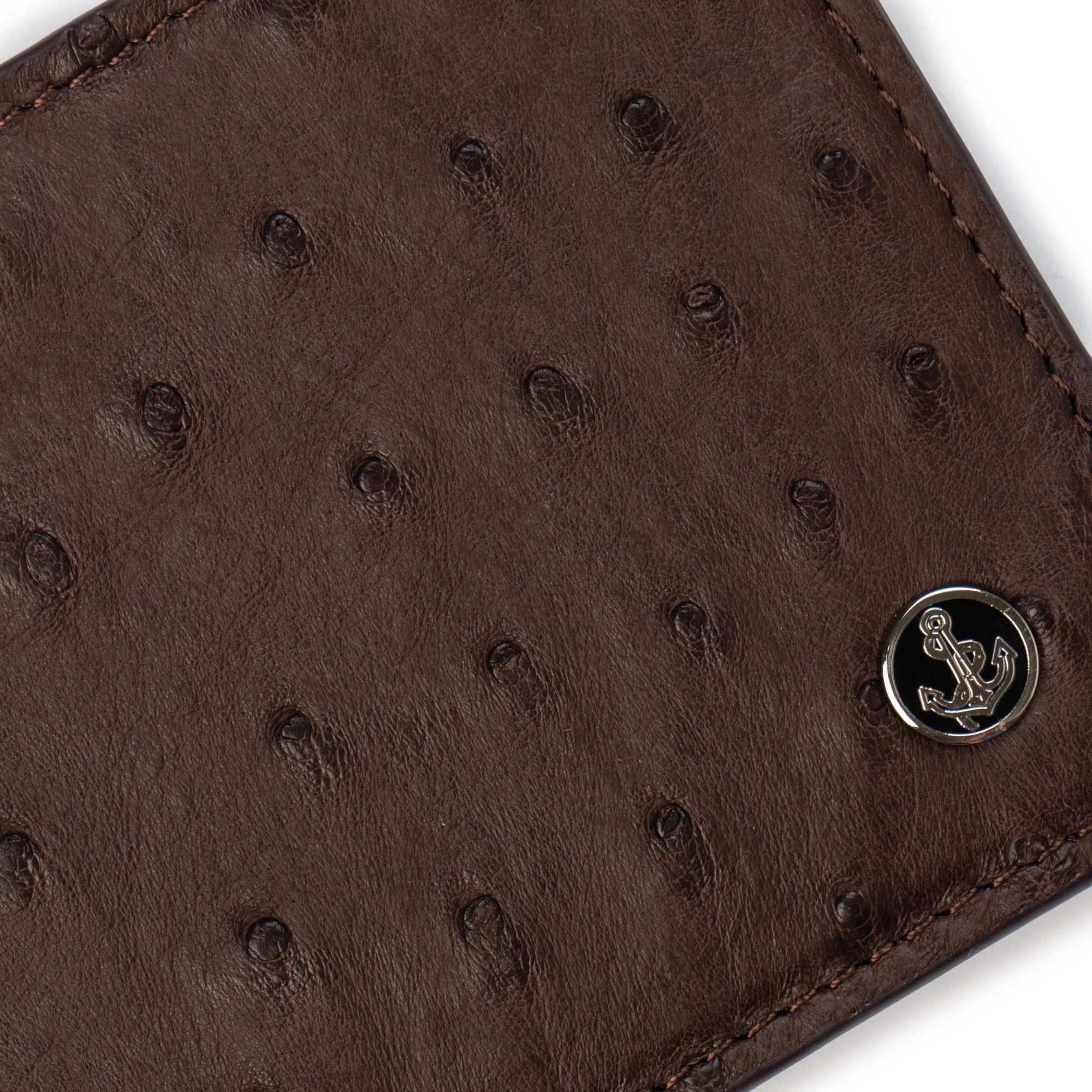 - Genuine Ostrich Leather: Crafted with premium coffee-colored ostrich leather for a unique, natural texture.