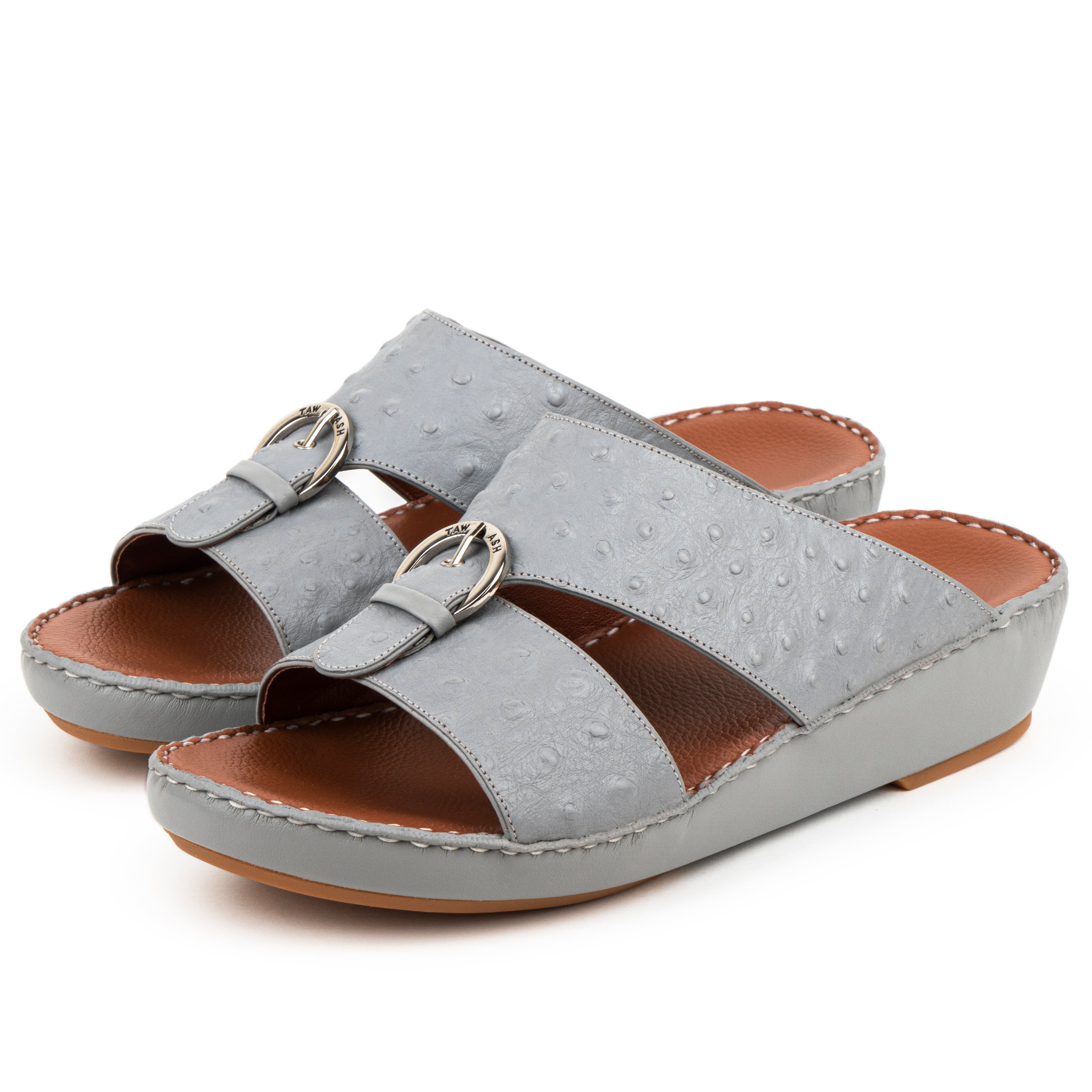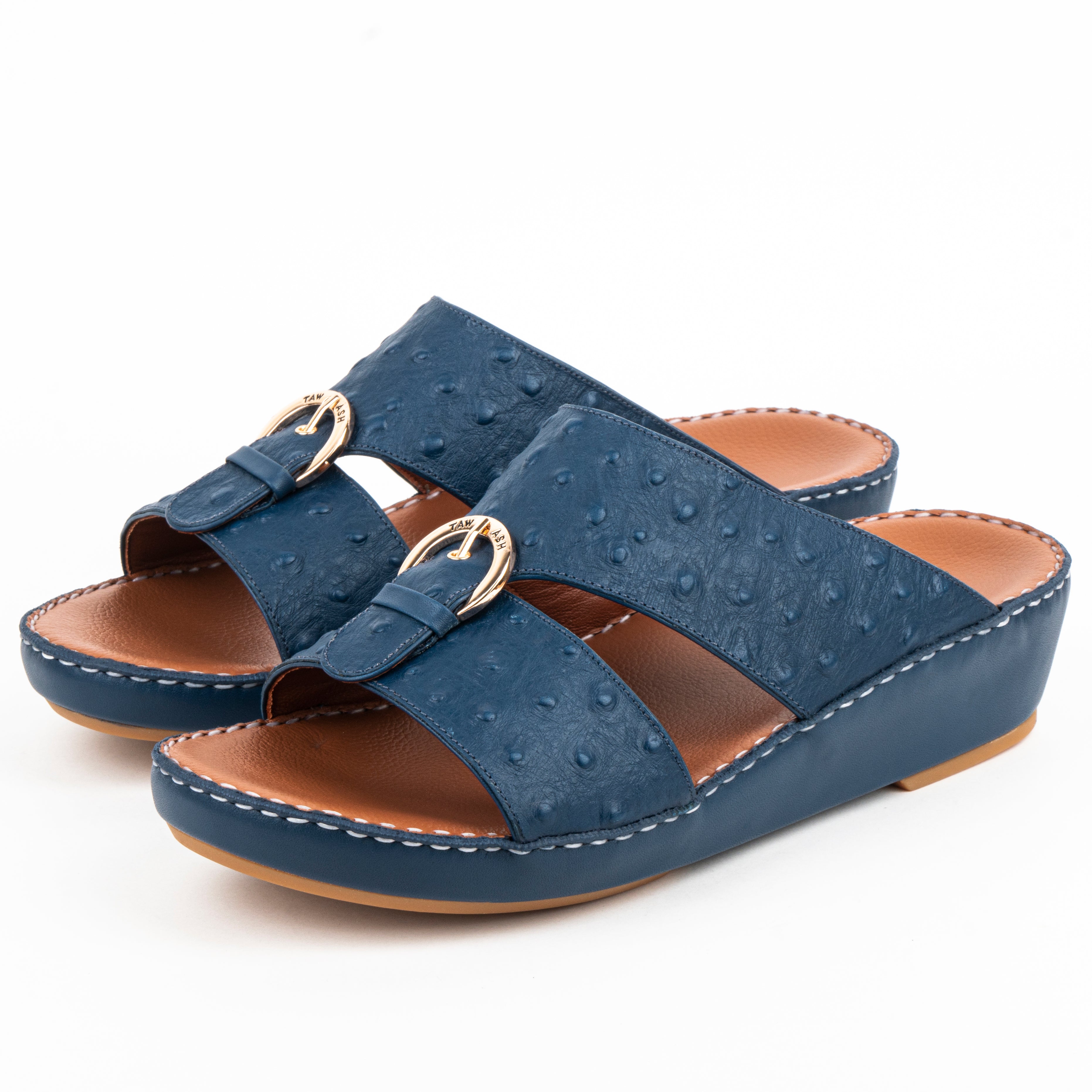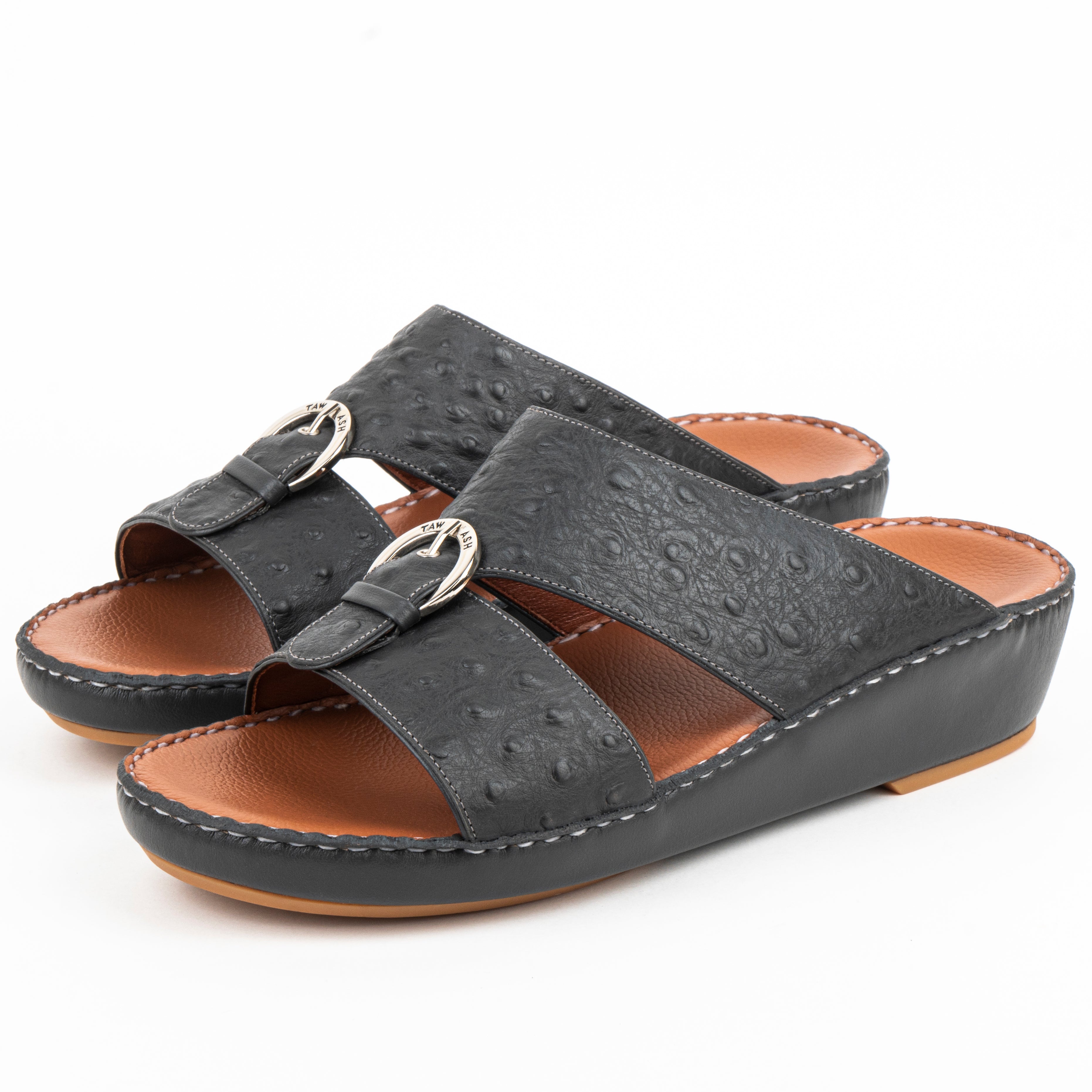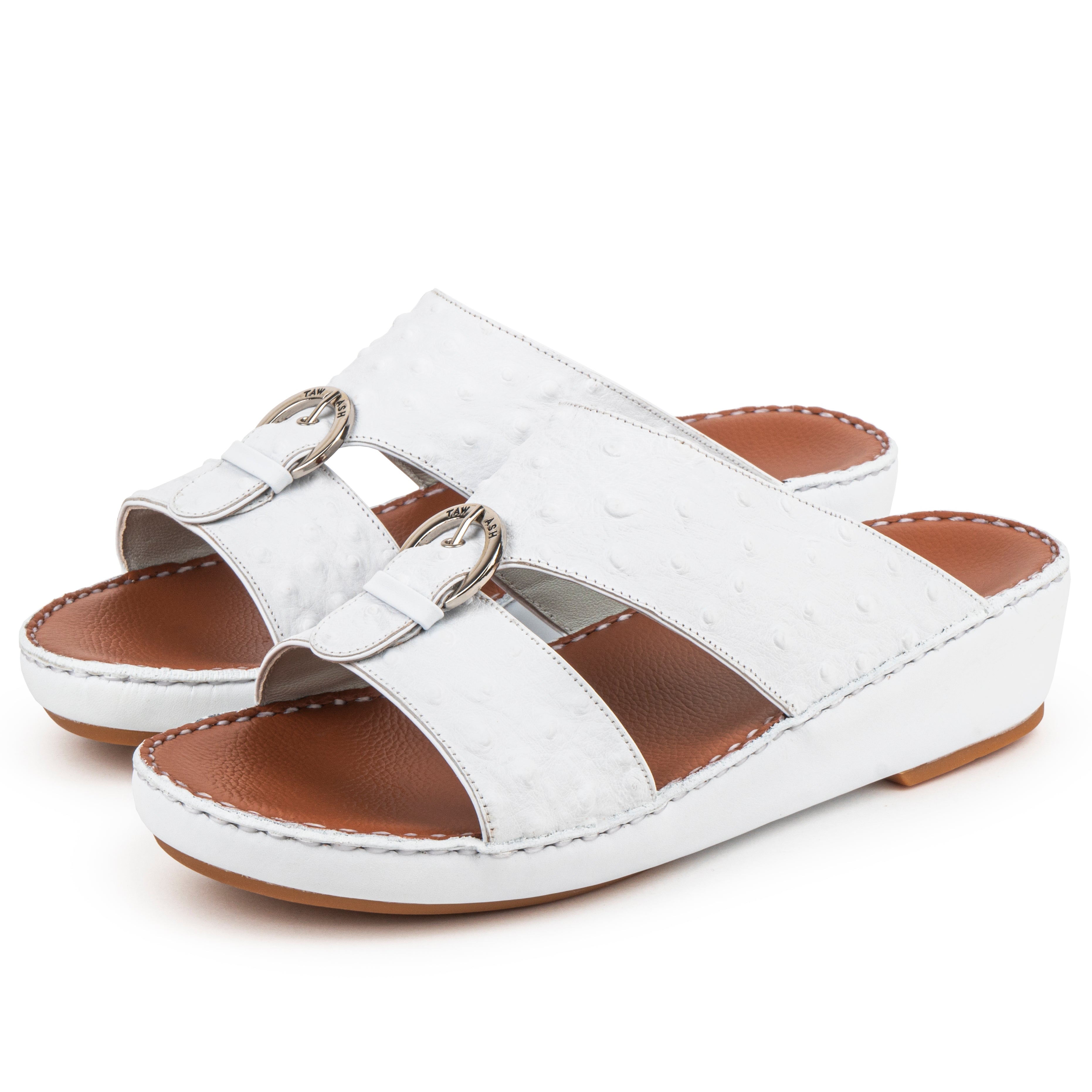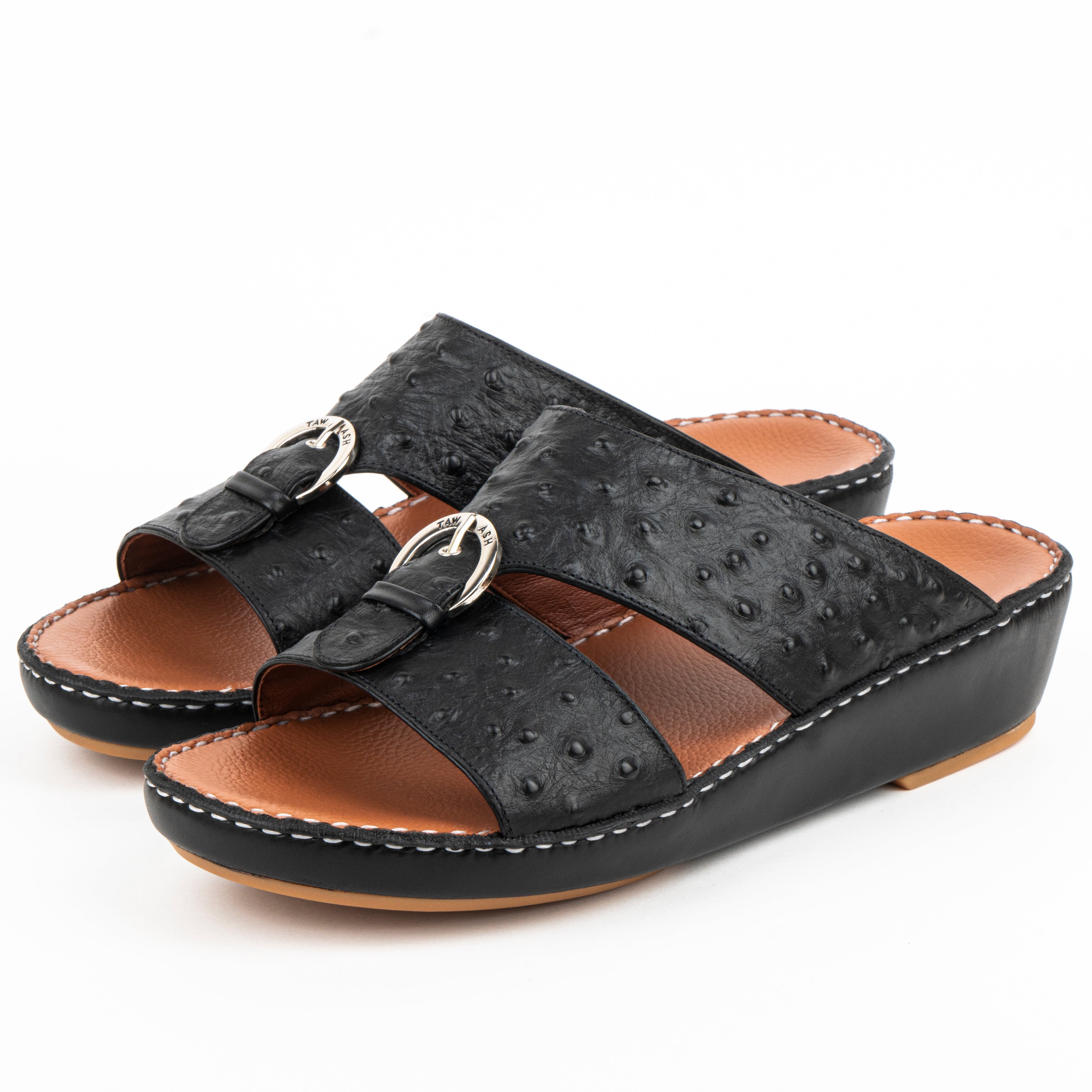 نعال عربي كلاسيكي مصنوع من جلد النعام، يتميز بتصميم كلاسيكي بسيط. نعل كعب متوسط مرن.