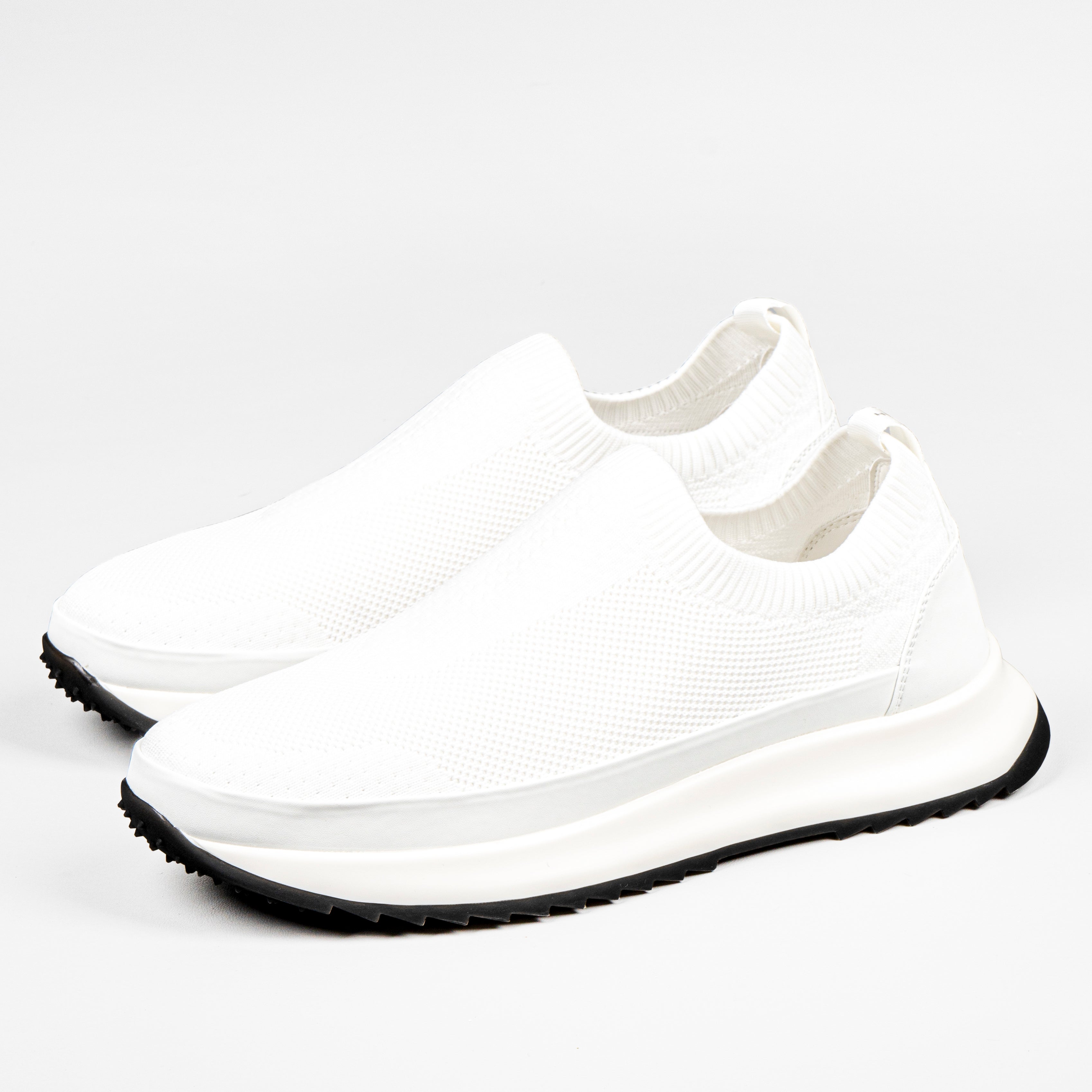 حذاء سنيكرز رجالي أبيض، جزء من تشكيلة جديدة من الأحذية الرجالية الجوتي، والذي يتميز بتصميم عصري وجذاب.